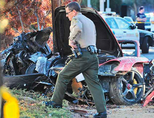 Por su parte, el diario Santa Clarita Signal informó que el Porsche de color rojo de Walker al parecer perdió el control y se estrelló contra un poste de electricidad y un árbol. Fue entonces que el auto estalló y se incendió.