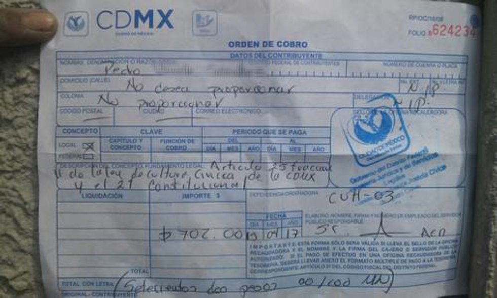 La titular del juzgado cívico CUH3, que sólo firmó el recibo de la multa con las iniciales en mayúsculas AED, le explicó que como no había hecho desmanes, no había puesto resistencia, no tenía aliento alcohólico y no tenía problemas previos con la ley, le aplicaría la multa mínima por obstruir la vía pública, es decir, 702 pesos.