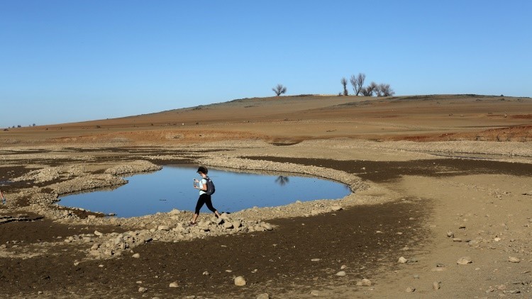 A visitor walks near the receding waters at Folsom Lake, which is 17 percent of its capacity, in Folsom, California January 22, 2014. California Governor Jerry Brown last week declared a drought emergency, and the dry year of 2013 has left fresh water reservoirs with a fraction of their normal water reserves. Picture taken January 22, 2014. REUTERS/Robert Galbraith (UNITED STATES - Tags: ENVIRONMENT TPX IMAGES OF THE DAY) - RTX17T4LRT Actualidad 21/08/2015.- La NASA acaba de publicar un informe en que explica que grandes áreas de valle Central de California se hunden debido a los efectos devastadores del consumo de agua subterránea.