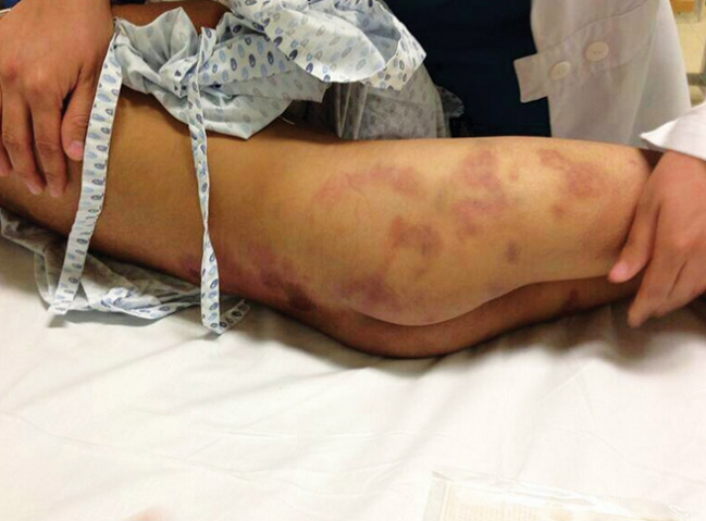 Las denuncias ventiladas en las redes sociales muestran una serie de fotografías en las que el niño aparece en la cama de un hospital, con visibles huellas de golpes en los brazos y quemaduras en el cuerpo.