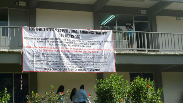 Cabe hacer mención que en las instalaciones del plantel educativo se colocaron lonas de inconformidad por parte de los maestros y personal administrativo, exigiendo a la Sección Sexta del SNTE respaldar esta inquietud ya que esta fue la negoció para su cargo desde hace tres años.