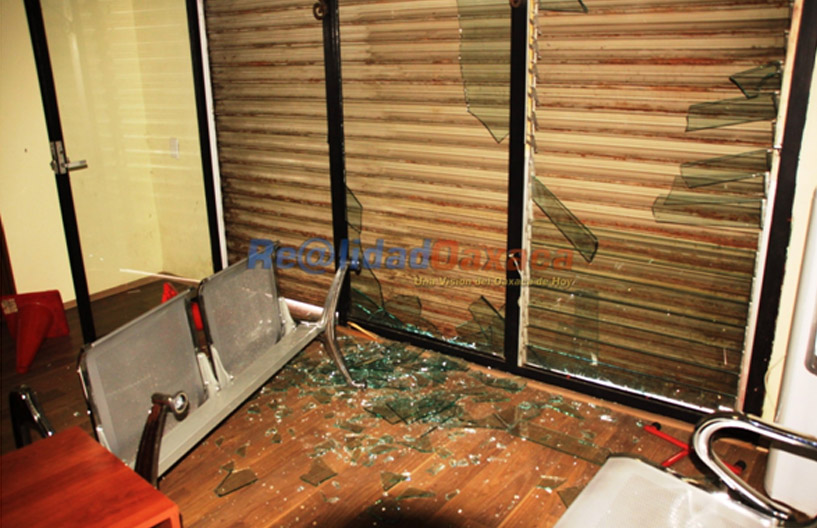Maestros de la Sección 22 del SNTE de Oaxaca, irrumpieron ayer la sede del Partido Revolucionario Institucional e hicieron destrozos en las oficinas de gestión social de los legisladores priístas, Samuel Gurrión Matías y Eviel Pérez Magaña en donde causaron cuantiosos destrozos, rompieron ventanales, saquearon la papelería y quemaron mobiliario.
