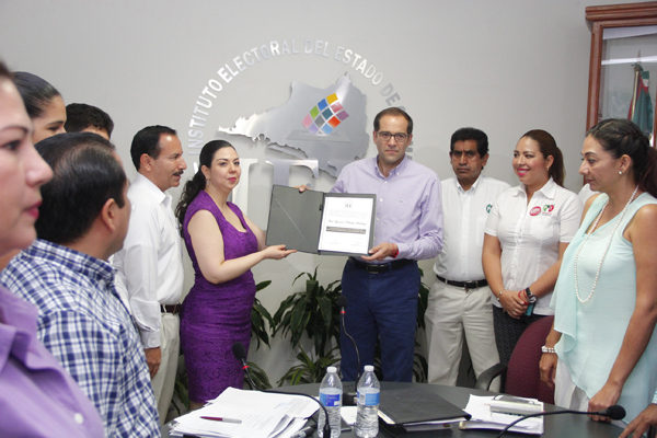 En sesión extraordinaria del Consejo General del Instituto Electoral del Estado, en donde se realizó el cómputo estatal de la elección de gobernador, se estableció que Nacho Peralta fue el ganador con 119 mil 437 votos. Acto seguido, la presidente del organismo electoral, Felícitas Alejandra Valladares Anguiano, procedió a la entrega de la constancia.
