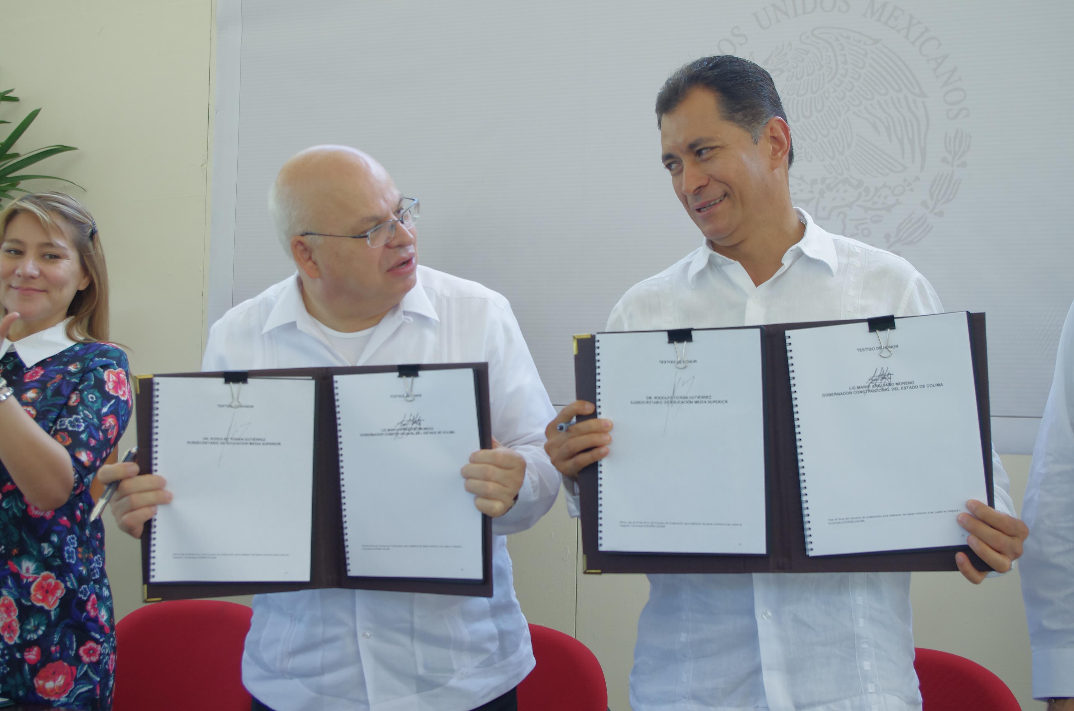 - Signan gobernador Mario Anguiano Moreno y el subsecretario de Educación Media Superior de la SEP, el Convenio del Espacio Común de Educación Media Superior en el Estado de Colima