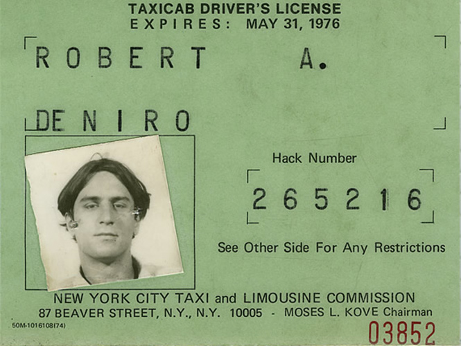 El documento, expedido a nombre de Robert A. De Niro (la A es de Anthony), deja constancia de que tiene permiso para conducir un taxi hasta el 31 de mayo de 1976, año en que se estrenó la película dirigida por Martin Scorsese y escrita por Paul Schrader.
