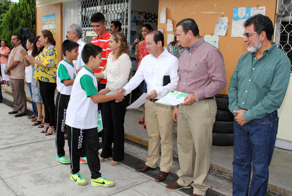El secretario de Educación, Armando Figueroa Delgado entregó reconocimientos a las alumnas de la primaria Heliodoro Silva Palacio T.M., que obtuvieron dos medallas de oro en handball femenil, categorías 2003 y 2004, durante la Olimpiada Nacional Escolar de la Educación Básica 2014, así como a los estudiantes que alcanzaron un cuarto lugar en handball varonil categoría 2004.