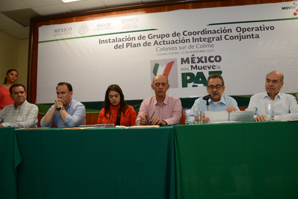 El gobernador del estado, Ramón Pérez Díaz, acompañado del subsecretario de Desarrollo Urbano y Vivienda de la Sedatu, Juan Carlos Lastiri Quiroz y de la directora general de la Coordinación Intersecretarial, Eunice Rendón Cárdenas, encabezó la instalación del Grupo de Coordinación Operativa del Plan de Actuación Integral Conjunta “Colonias Sur de Colima”, que permitirá transformar de manera positiva las colonias El Tívoli, Bosques del Sur, Quinta El Tívoli y Leonardo B. Gutiérrez.