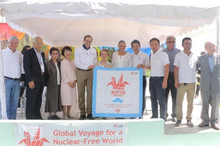 Colima Medios 08/11/2016.- Con el propósito de estrechar lazos de hermandad, así como respaldar las acciones de paz y el desarme nuclear, el gobernador José Ignacio Peralta Sánchez encabezó el «Encuentro por un mundo libre de armas nucleares» con la tripulación del Barco de La Paz y sobrevivientes japoneses de los bombardeos de Hiroshima y Nagasaki.