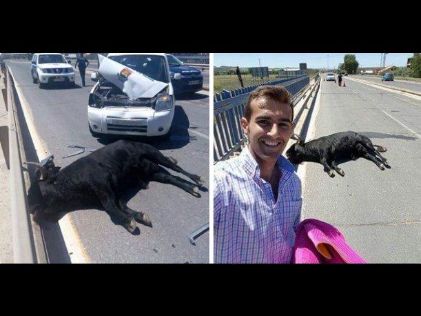 A la tragedia se sumó que el torero Sergio Blasco eligió la penosa escena para una selfie. La imagen ha sido severamente criticada por organizaciones por los derechos de los animales e incluso por el partido Podemos.