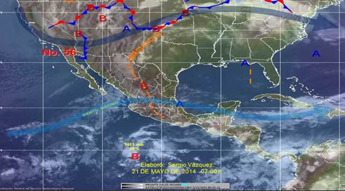 Sin embargo, la circulación del sistema en interacción con los desprendimientos nubosos de la zona de intertropical de convergencia, provocará potencial de lluvias fuertes con actividad eléctrica en el sur y centro del país.