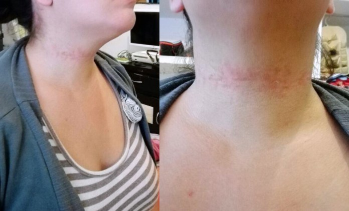 Comentó que su primer pensamiento fue que se trataba de un asalto, por lo que arrojó al piso su cartera, las llaves y su celular, pero a pesar de ello el hombre no la soltó y la jaló hacia su pecho ejerciendo más presión con el cable.