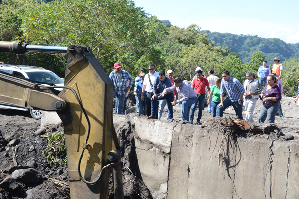 Además constató los daños que provocó el río El Cordobán que se desbordó por la carretera y que dañó el puente del mismo nombre, ya que la cantidad de agua socavó una parte de los dos extremos.
