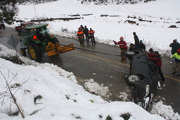 Turistas provocan caos vehicular por disfrutar de la nieve