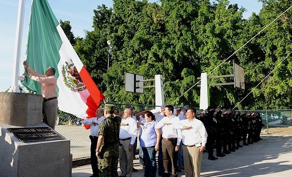 Presentan asta bandera y placa conmemorativa del Instituto de Capacitación Policial