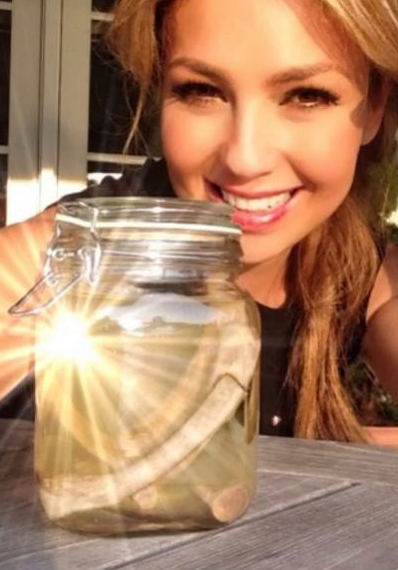 - Para comprobar que ella no dice mentiras, Thalía mostró que conserva las costillas que se quitó para lucir una cintura diminuta.
