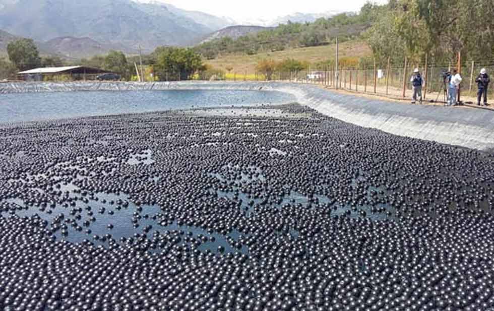 Un sistema conformado por miles de esferas flotantes que logran controlar la evaporación del agua fue puesto en marcha en una piscina de acumulación de agua potable en el norte de Chile para disminuir los efectos de la sequía que azota esa zona del país.